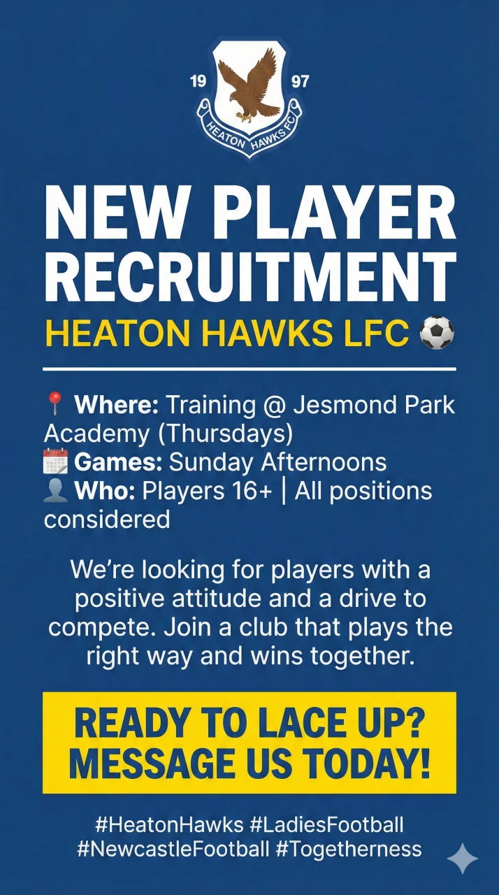 The Heaton Hawks Ladies are looking for a First Team Manager who shares our passion for the beautiful game. We aren’t just a team; weโre a family that prides itself on a technical, passing game and building play from the back. If you have the tactical vision to lead a 3-5-2 system and the drive […]