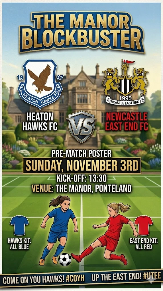 The Hawks are back on home turf this Sunday as we welcome Newcastle East End to The Manor! We know exactly what it takes to get the result: immense Team Spirit and that undeniable Togetherness. Weโ€™ll be looking to dictate the tempo with our passing game, building up patiently from the back, and making the […]