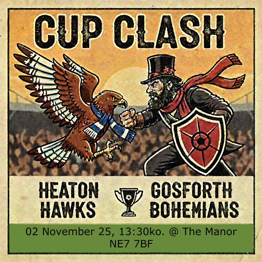 Get ready for a thrilling Northumberland League Cup showdown as Heaton Hawks LFC face off against Gosforth Bohemians! The Hawks are flying high after a dominant 4-0 victory in the teams’ earlier league fixture, but in the unforgiving world of cup football, form goes out the window. Will the team’s commitment to a passing game and playing from the back—combined with their competitive spirit and strong focus on togetherness—secure their passage to the next round? Or will the Bohemians produce a giant-killing performance to avenge their previous defeat? Come down and cheer on the Hawks as they aim to progress together and keep their cup dream alive!