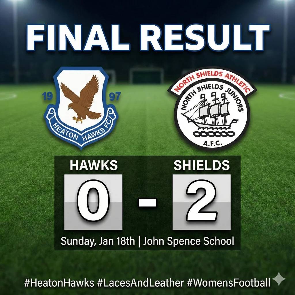 Football has a way of testing a team’s resolve, and Sunday’s trip to John Spence School was certainly one of those days. Despite a 2-0 defeat to a clinical North Shields side, the Heaton Hawks left the pitch with their heads held high after a performance defined by sacrifice and spirit.